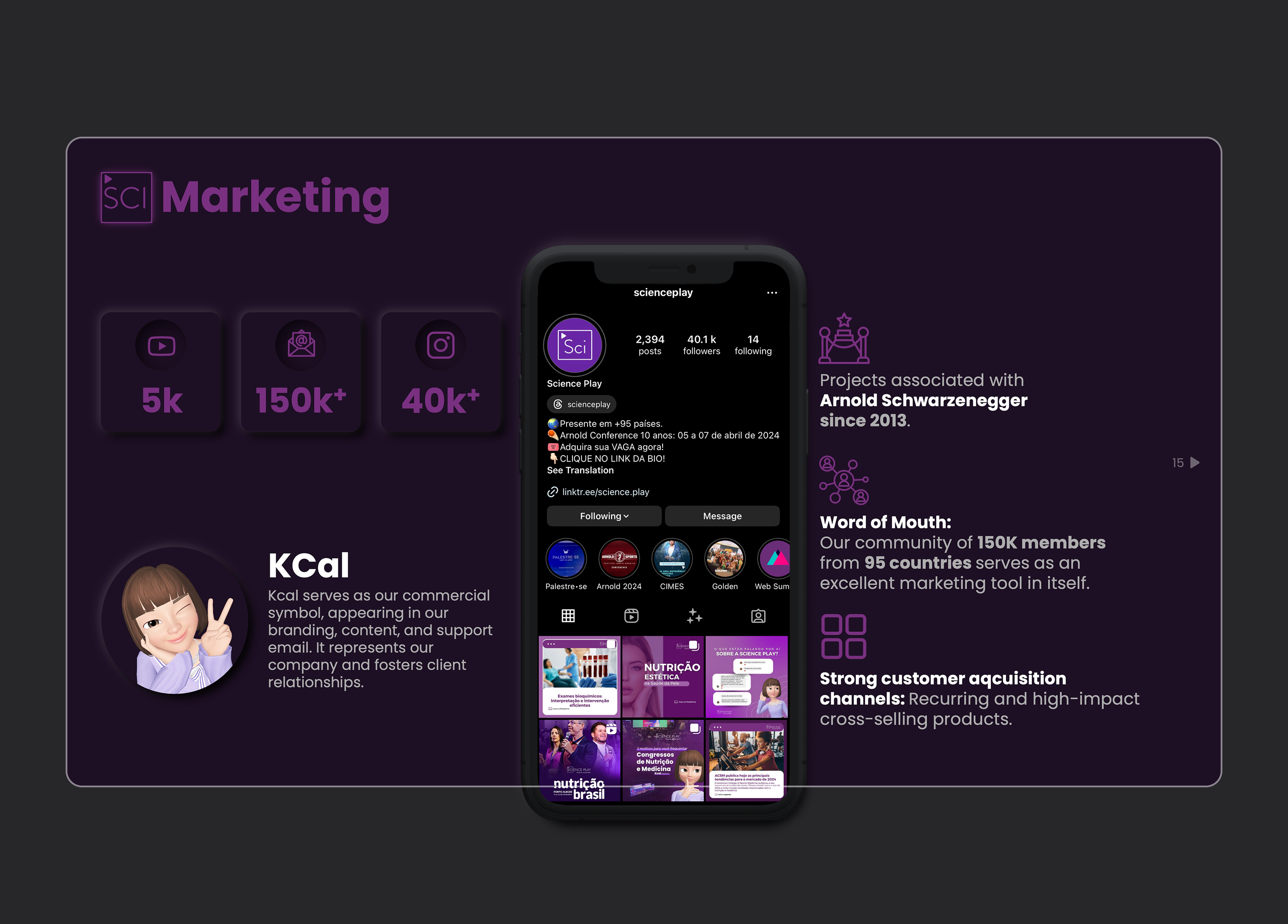 Science Play is a Brazilian ed-tech company catering to doctors, nutritionists, and personal trainers by offering specialised health content through digital and in-person experiences. The company also organises and partners with Arnold Schwarzenegger’s "Arnold Sports Festival" in Brazil.