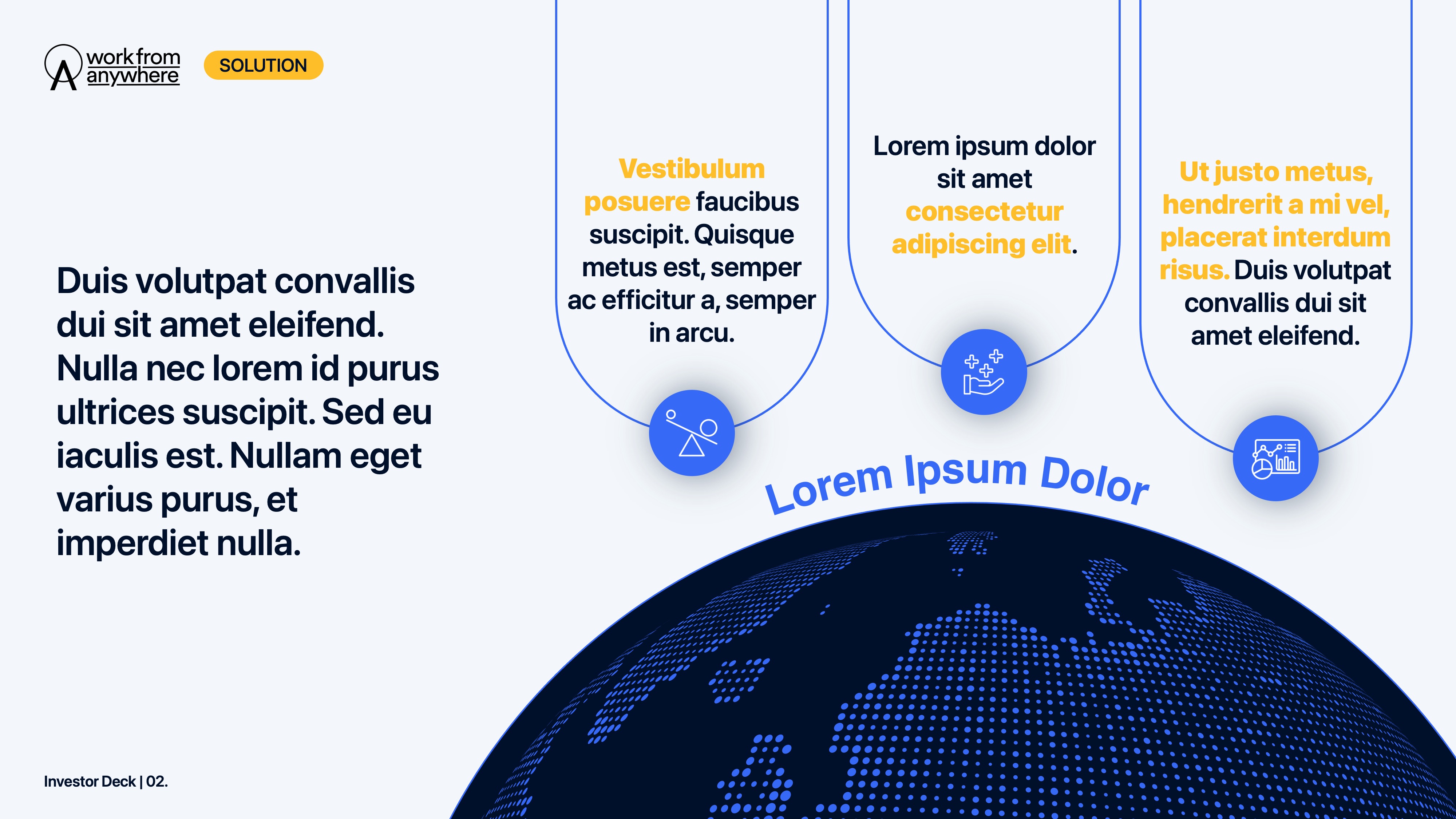 The collaboration focused on creating a fresh, new style for their investor deck. At the start of the project, the company had recently launched their new website design but lacked brand guidelines. To ensure consistency across all materials, I extracted key design elements from the website and incorporated them into the deck, while also creating a new cover image inspired by their website’s hero image to establish a strong visual identity from the outset.